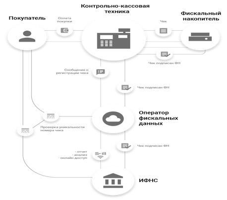 В Законе указаны требования не только ко всем участникам рынка изготовления и применения ККТ, но и к их конструкции, т.е. конкретным образцам контрольно-кассовой техники и фискальным накопителям. Для чего необходимо Пользователям знать эти конкретные требования? Прежде всего, для того, чтобы понимать, проверять и знать, соответствует ли Ваша контрольно-кассовая техника и фискальные накопители требованиям Закона. Поэтому рассмотрим, какие же требования предъявляются к контрольно-кассовой технике и фискальным накопителям. Для этого сначала нужно понять, как работает онлайн-касса? Процесс продажи на онлайн-кассе теперь выглядит так: